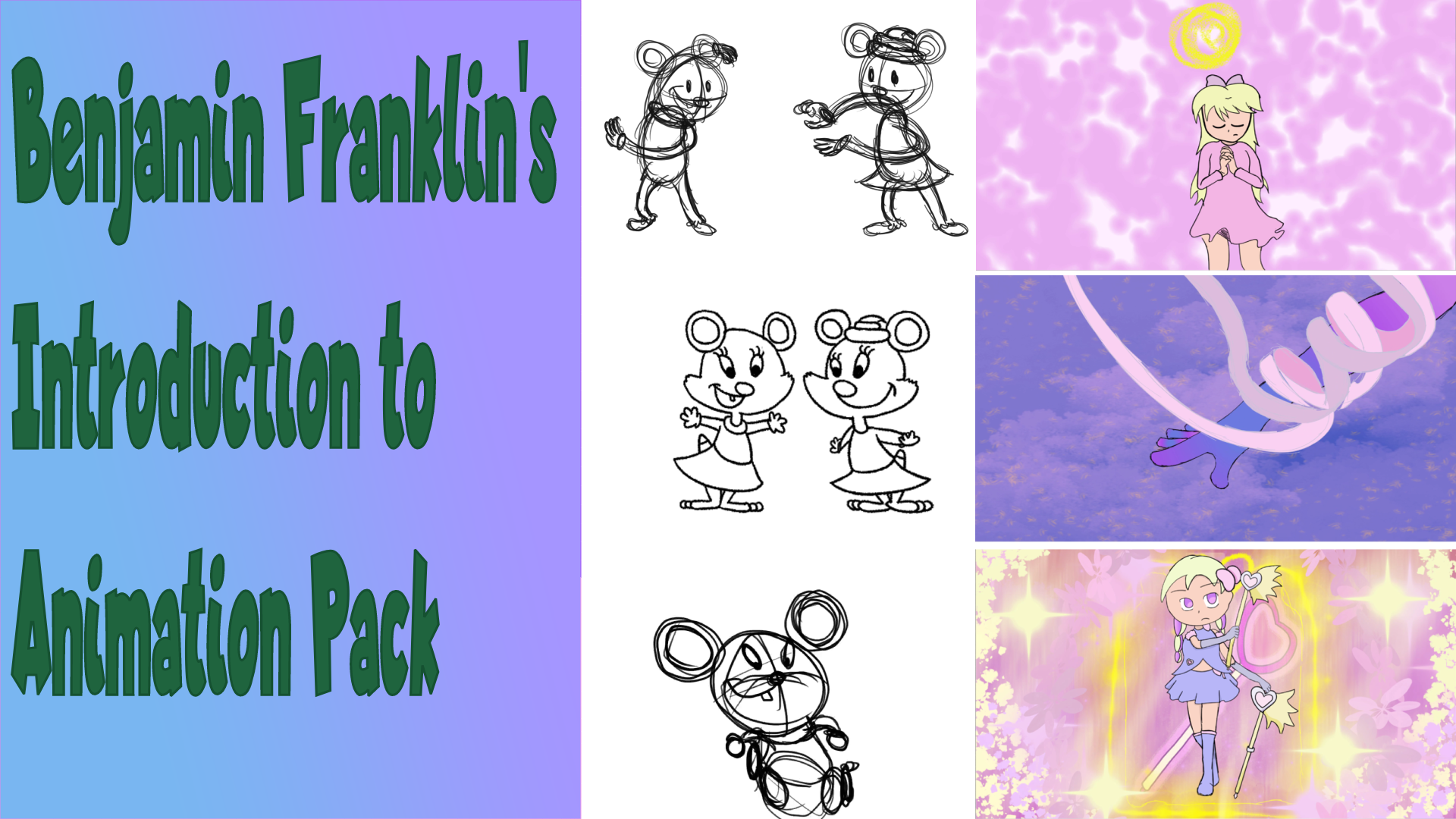 This will be an introductory to character design and animation for the art class of Ben Franklin. This package will include 13 lessons on designing characters in different styles and multiple methods of animating, along with a few program interface tutorials.